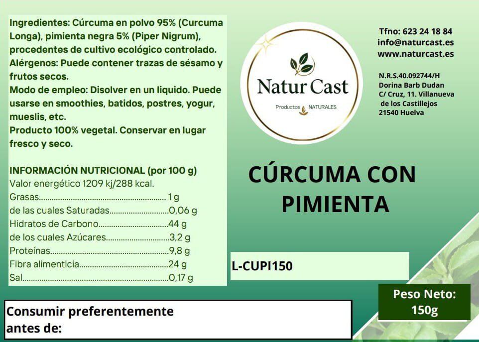 Ingredientes: Polvo de cúrcuma orgánica con pimienta.