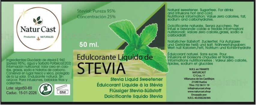 Calidad y pureza: La stevia utilizada en Naturcast cumple con los estándares de calidad, asegurando una pureza del 95% en glucósidos de steviol, sin aditivos innecesarios ni procesos artificiales.