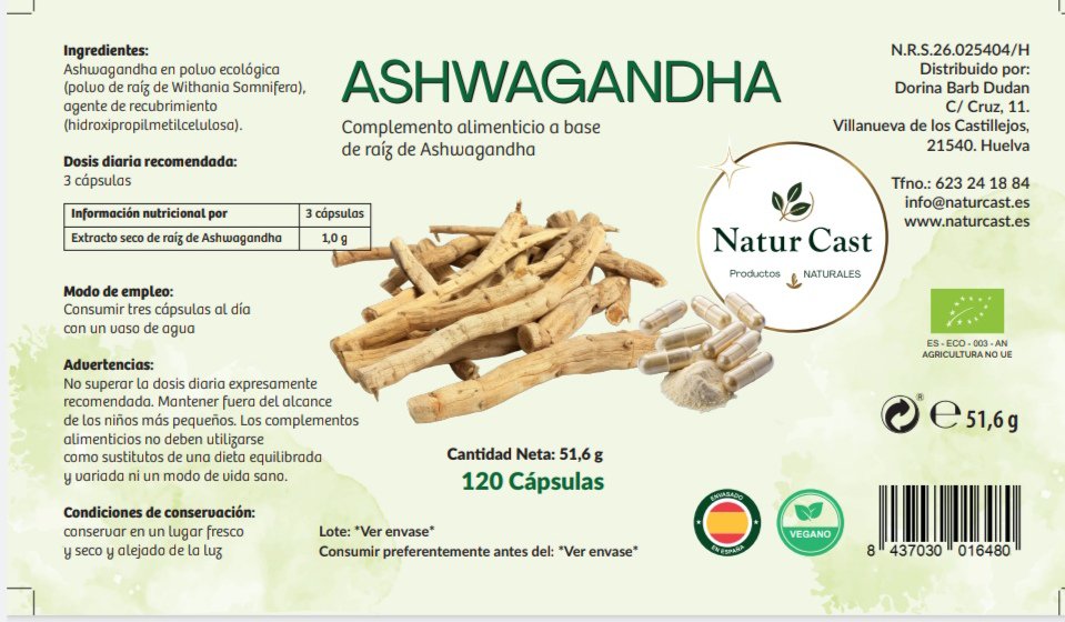 🌿 Raiz de Ashwagandha Ecológica en cápsulas Cápsulas120 unidades